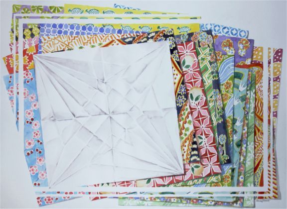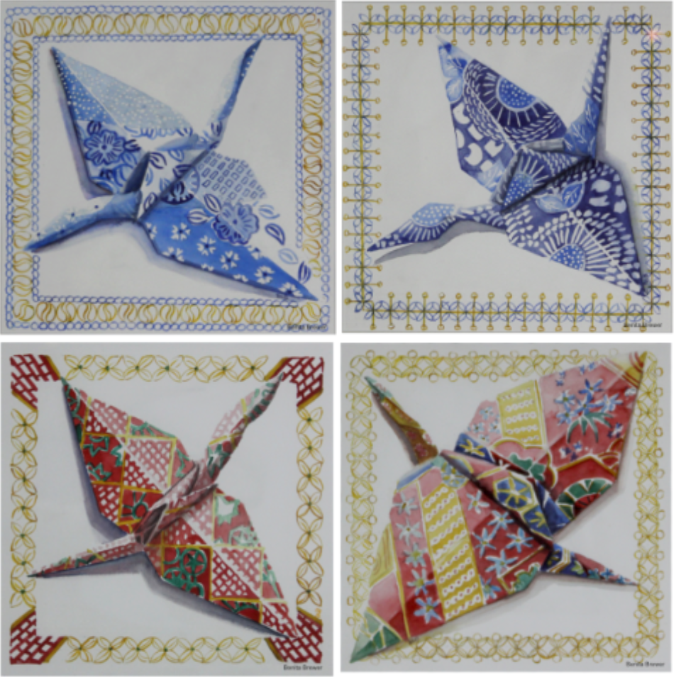 These origami cranes represent the vision of the "Dreams Demand Work" painting and hang on either side of the larger painting.