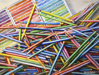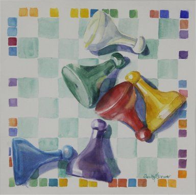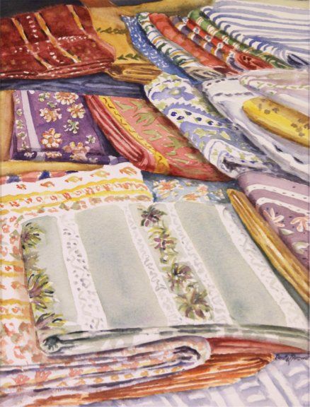 My mother was a talented seamstress and this painting reminded me of her method of laying out her colors and materials when designing a project.